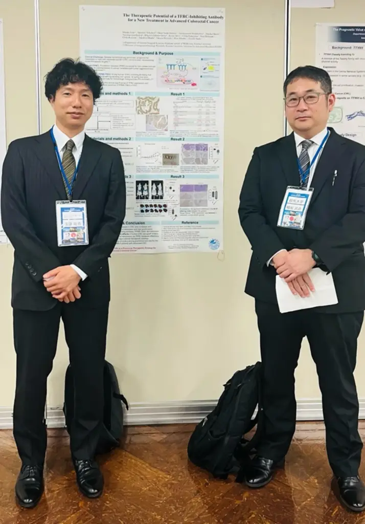佐伯教授は、ランチョンセミナー「HER2陽性胃癌治療の最前線」にて座長を務められました。また、遠藤は「進行大腸癌とトランスフェリン受容体」をテーマにポスター発表を行いました。会場では多くの先生方と活発な質疑応答や意見交換を行うことができ、今後の研究に繋がる大変有益な機会となりました。