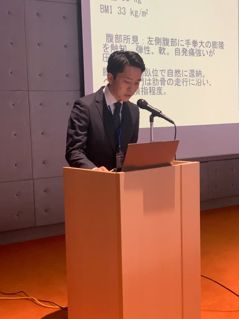 一般演題第一部では、当科から柴崎雄太先生が座長を務め、野尻義人先生が「繰り返す咳嗽により生じた特発性肋間ヘルニアの一例」について発表し、稀少な病態に対する診断および治療戦略について報告しました。